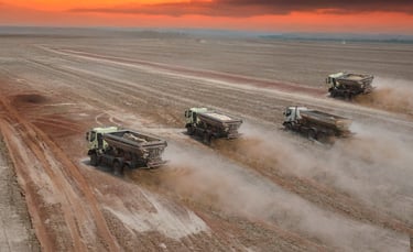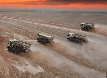 21 caminhões de apoio, garantindo fluidez e autonomia operacional.
